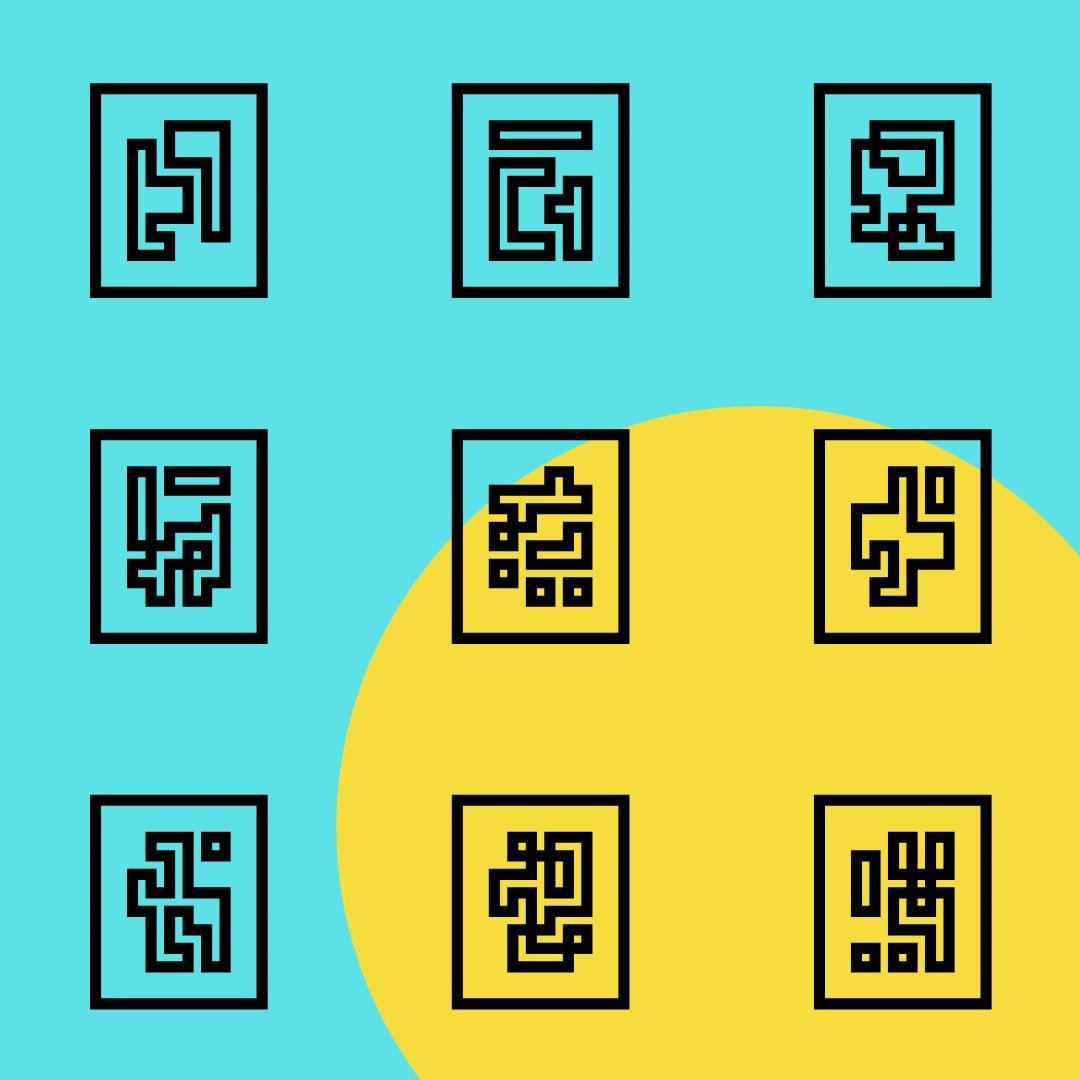 Experimental pixel font type for coded communications. Mapped to English (QWERTY) keyboard.