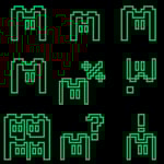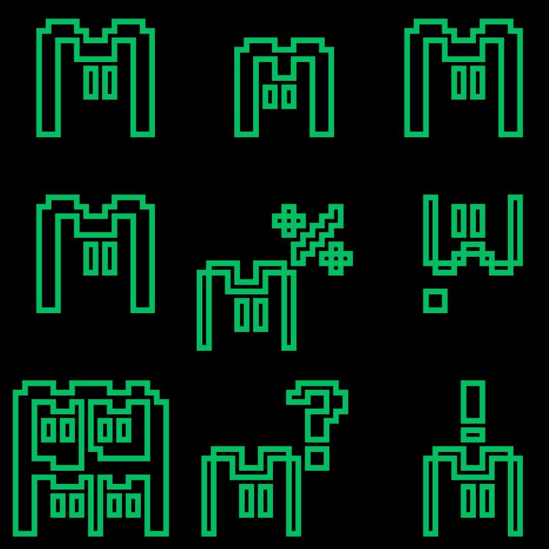 Experimental pixel font type for coded communications. Mapped to English (QWERTY) keyboard.