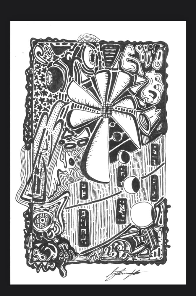 Windmill (Feedback Loop Series) Pen and Ink on acid-free cardstock. Framed Original. Size: 4in x 6in Price: $135 2026 Artist: Stephen Botts
